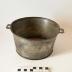 Description : Récipient sur plan circulaire (D à la base 14,8cm), à bords moyens et droits, légèrement évasés (Ht 10,2 cm et au rebord sup 18,2 cm). Deux petites anses pleines , latérales et fixes, sont soudées, à l'horizontale, en vis à vis près du rebord supérieur.