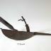 Description : Outil composé d'une barre horizonatle de section carrée (3 x 3 cm) et 63 cm de longueur. Une des extrémités est une pointe. L'autre extrémité se prolonge par une barre oblique qui se sépare en deux plats de 35 cm de long. La longueur de la partie oblique est de 50 cm. Les deux plats sont écartés de 5,5 cm. Les deux plats sont reliés par 2 vis avec tête ronde d'un côté et écrou de l'autre. Ils sont destinés à se fixer au mancheron. Le début de la partie oblique est percée de deux trous destinés à recevoir une pointe du versoir.