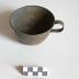 Description : Récipient sur plan circulaire à bords moyens galbés - col enroulé - anse latérale fixe verticale en forme d'oreille