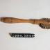 Description : Disque de bois, denté, mobile autour d'un axe, fixé à un manche fait dans le même bois.