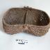 Description : Panier sur plan rectangulaire aux angles arrondis. Tressage simple. Cercle est cassé, tout comme l'anse absente. Ils sont en osier plein. Les autres montants sont en osier fendu. L'arc du montant central étant plus réduit. Le panier comprend deux parties bombées servant d'assise.