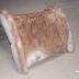 Description : Deux arceaux en paille longue tout comme les traverses. L'ensemble est recouvert d'une peau de veau, poil vers l'extérieur. Deux cordelettes cousues en point avant maintiennent solidaire la peau aux traverses. Le coussinet est matelassé. Six éléments de section rectangulaire sont séparés par une couture. Le coussinet est percé régulièrement de six trous.