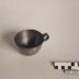Description : Récipient de plan circulaire, à bord haut légèrement galbé, muni d'une anse fixe et verticale.