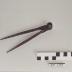 Description : Deux branches rivetées en tête articulées en "V". L'une dédoublée (munie de deux entailles) faisant châsse à l'autre. Pointes plates nervurées.