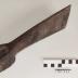 Description : Planche étroite (Lg : 3,5 cm à l'oeil, 9 cm au taillant) légèrement coudée. Légèrement concave vers le manche (partie basse). Taillant très faiblement convexe. L'oeil est ovale. Le dos de l'oeil sur la face externe est rectangulaire et a peut-être été martelé.