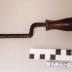 Description : Ecouanne à denture arrondie. Rangs de stries en travers parallèles. Semelle plate fine (0,7 cm). La soie est coudée puis noyée. Le manche est tourné.