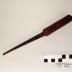 Description : Lame étroite s'affinant vers l'extrémité. Dent droite de forme oblique. Lame à encoche. Elle est maintenue au manche par un clou. Manche cylindrique incisé pour glisser la lame. Il est percé d'un trou à son sommet. Il n'est pas d'origine.
