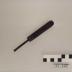 Description : Petite gouge creuse montée sur soie de section rectangulaire noyée. Taillant de la gouge prend la forme d'un biseau (Lg : 4 mm), Manche rectangulaire aux angles arrondis.