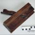 Description : Fût rectangulaire composé de trois pièces assemblées. La partie supérieure de la joue droite est rapportée et collée. Elle est décorée d'une rainure dans sa partie inférieure. Une pièce de bois rectangulaire compose le sommet du fût. Une autre similaire comprend la modénature de la semelle. Les deux pièces sont maintenues solidaires par la pression du coin sur le fer. La lumière est latérale à droite. Elle est de forme semi circulaire. Une vis à proximité de la lumière assure un maintient supplémentaire au fer.