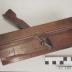 Description : Fût rectangulaire. La joue droite dans sa partie supérieure est rapportée et clouée. La lumière est trapézoïdale à droite. Elle est garnie de ses fers et coin. Une vis maintient le fer en place. La lumière a été élargie au ciseau à bois.