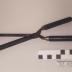 Description : Deux branches de métal, l'une de section circulaire, l'autre semi-circulaire creuse, placées en "X", de manière à se mouvoir autour d'un axe. Les soies sont noyées. Deux manches sont munis de virole.