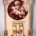 Description : Support carton rectangulaire dont les bordures à l'exception des angles ont été chanfreinées. La bordure est décoré d'oves. Le haut du carton est décoré de volutes végétales. Un médaillon circulaire (D : 13 cm) représente au fusain l'Enfant Jésus nu dans les bras de Joseph dans un paysage forestier. L'enfant tient de sa main gauche des fleurs et de la main droite le bras coudé, il joue avec la barbe blanche ondulée et soyeuse de Joseph. Ce dernier est revêtu d'une ample tunique aux plis en "V". Sur la partie basse du carton est collé au centre le bloc note dont la face est datée de 1949. Deux traits verticaux brun l'anime et au sommet sur la bordure extérieure des traits sont dessinées deux fleurs avec leur feuillage dans un trapèze irrégulier. Le bloc note comprend 365 feuillets datés (L : 10 cm Lg : 6 cm)