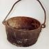 Description : Récipient sur plan circulaire à fond bombé. Les bords sont légèrement évasés. Anse supérieure mobile, crochetée à deux anneaux latéraux.