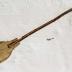 Description : Planche de forme elliptique se prolongeant à une extrémité par une fourche à dents de section rectangulaire. Ces dents sont percées de trous régulièrement espacé. Elle est maintenue dans la fourche de la pelle par deux chevilles de bois aux extrémités. Un bois de cerisier (L : 154 cm) constitue le manche