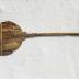 Deux planches demi-circulaire sont fixées au manche par tenons et mortaises (D : 70 cm). Les planches n'étant pas assez larges deux pièces en arc surbaissé ont été assemblées aux extrémités des planches par tenons et mortaises. Ce système est renforcé par une planche de section rectangulaire (1x12 cm) aux bords chanfreinés perpendiculaire au manche. Elle est clouée dans la partie supérieure de la pelle. Enfin, une patte de bois clouée perpendiculairement au manche (L : 12,5 cm) renforce le nez de la pelle. Les pièces qu'elle relie ont été évidées afin de la loger.