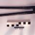 Description : Deux branches de métal de section rectangulaire montées à une extrémité sur une articulation en "V". Aux extrémités des branches se trouvent deux ergots cylindriques perpendiculaire à ces derniers (L : 0,5 cm D : 0,4 cm). L'ouverture maximale des branches correspond à environ 100°.
