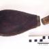 Description : Récipient pyriforme, en bois. Il est recouvert par une enveloppe de cuir composée de deux pièces de cuir cousues. Il est muni d'un bouchon cylindrique taillé au couteau.