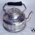 Description : Récipient sur plan circulaire, à bords moyens, godronnés. Il est muni d'un bec à goulot, d'une anse supérieure mobile avec une poignée en plastique isolante et ergonomique. La bouilloire se ferme par un couvercle avec un ergot central dit à "coquemar".