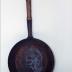 Description : Récipient en métal sur plan circulaire, à bords bas évasés, à manche alternant une douille de métal et un manche en bois cylindrique. A l'extrémité du manche se trouve une vis à anneau dans laquelle est passée un anneau.