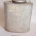 Description : Récipient métallique sur plan lenticulaire à bords hauts et droits fermé par un couvercle circulaire solidaire au bidon et se fermant hermétiquement par un crochet. Une des faces est galbée pour épouser la forme du dos. Trois accroches pour fixer deux lanières de cuir servent de bretelles de transport.