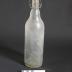 Description : Récipient en verre sur plan circulaire à bords hauts et droits, à goulot galbé à bouchon en porcelaine avec un système de fermeture métallique. Le verre est granuleux en surface.