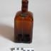 Description : Récipient en verre sur plan carré, à fond plat, aux angles chanfreinés, bords droits et hauts pour former le corps (H : 14,5 cm) se rétrecissant brutalement pour former le goulot (H : 5,5 cm D : 3,5 cm). Sur une des faces se trouve une rainure pour y faire passer un ruban de garantie.