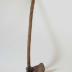 Description : Pièce en acier dont l'une des extrémités a été amincie pour servir de tranchant. (L : 12,5 cm) l'autre a été repliée pour réaliser l'oeil de la hache, la soudure à l'arc indique une réalisation récente. Le manche est une simple branche équarrie et égalisée pour lui donner une section relativement constante (section ovale 3 x 3,5 cm)