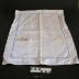 Description : Poche ouverte dans le dos en son milieu et maintenue fermée par deux boutons blanc et deux boutonnières. Tissu blanc. A 5 cm des bords se trouve sur le pourtour une broderie au coton bleu avec un point de fantaisie.