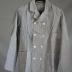 Description : Vêtement à col chemisier, transformable et maintenu ouvert en "V" par deux boutonnières s'adaptant chacune, sur deux boutons cousus sur le devant. Dans le même alignement, quatre boutons de chaque côté se fixent sur quatre boutonnières de chaque côté ; permettant un boutonnage homme ou femme. Une poche plate à gauche et à droite en bas du vêtement. (14 x 14 cm) et une petite sur le haut à gauche (7x10 cm). Les manches longues sont fermées à la base par un bouton. Le poignet comporte un revers qui peut se rabattre. Au dos, le vêtement est cintré. Il n'y a pas de coutures sur les côtés. On observe trois coutures dans le dos.