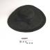 Description : Chapeau de feutre noir à très large bord (15 cm). Feutre rigide entouré par un ruban de velours noir (Lg : 3 cm). Le ruban de la calotte est noué et les deux bouts flottent librement (25 cm). Une attache est prévue pour le tenir sur les épaules.