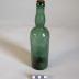 Description : Récipient en verre sur plan circulaire à bords hauts et droits, goulot galbé, teinté vert foncé.