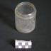 Description : Récipient sur plan circulaire, à bords bas et droits se terminant par un goulot à vis. Le bouchon est manquant. Le goulot à la même section que le récipient.
