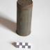 Description : Récipient sur plan circulaire à bords droits et hauts. Le couvercle (H : 12 cm) a été ultérieurement perforé d'une multitude de trous pour transformer cette boîte en saupoudreuse.