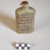 Description : Récipient sur plan rectangulaire mais arrondi sur les deux petits côtés. Bords hauts et droits se rétrecissant pour former le goulot sur plan circulaire, court. Le récipient est constitué de deux tôles profilées ressoudées longitudinalement. Bouchon en liège percé de deux trous par où passe une ficelle rouge nacrée. Cette ficelle permet de sortir le bouchon.