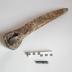 Description : Houe simple à un seul taillant ayant la forme d'une pointe légèrement recourbée de section rectangulaire allant en s'éffilant pour former la pointe à l'extrémité opposée, plus large et munie de l'oeil de fixation du manche.