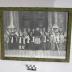 Description : Photographie d'un groupe de communiants (de garçons) encadrant le prêtre de la paroisse. Le groupe est installé sur le parvis d'une église dont on aperçoit la partie inférieure de la porte et les colonnes encadrant celle-ci. La photographie est sous verre et encadrée par un cadre en imitation vert marbré de noir. Au dos, un carton de support avec les attaches de fixation.