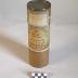 Description : Boîte en carton sur plan circulaire à bords droits avec un couvercle amovible qui s'emboîte sur le corps de l'objet. Le fond de la boîte et du couvercle sont en tôle . Une étiquette recouvre boîte et couvercle. Il est mentionné dessus la longueur de l'abuplast 5 m en 0m20 et perforé, sa composition Zn025, emp caout simp 75. Le nom du fabricant et l'adresse, 9 rue de la gare Levallois-Perret. On devine un tampon 27740.