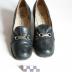 Description : Chaussures de femmes à talon demi-haut (5 cm). Le dessus du pied se termine par une langue. Couture centrale sur l'avant du pied. Boucle de fantaisie à l'avant de la chaussure. Semelles en cuir intérieur doublé de peau.