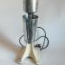 Description : Appareil composé d'un pied et d'un bloc moteur. Le pied en fonte émaillée blanche, base carrée évidée à l'avant. Présence de quatre pieds en caoutchouc dur vissés sous la base. Raccordement électrique et plaque signalétique. Sur la face avant, présence de deux crochets pour soutenir le petit seau ; en sommet : le bloc moteur se présente sous la forme d'une boîte cylindrique se terminant par une tige tournante et l'hélice du batteur.