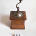 Description : Volume droit de section carré, surmonté d'une demi sphère (D : 11 cm) elle-même surmontée d'un engrenage de serrage et d'une manivelle qui tourne horizontalement. Le sommet du cube est creux en forme de demi sphère. La base reçoit un tiroir qui recueille la poudre à café. Deux petits ressorts le maintient à l'intérieur. Un bouton aide à le tirer.