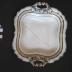 Description : Plat sur plan carré à bords très évasés, galbés, avec deux anses opposées. Garniture en feuilles de lierre, liseré large doré rehaussé de bordures noires sur tout le pourtour. Le plat a été cassé en deux. Les deux parties ont été recollées et à l'envers on remarque cinq agrafes métalliques le long de la cassure. Une au centre et quatre sur les rebords.