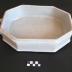 Description : Récipient sur plan octogonal avec une glaçure gris claire craquelé avec deux anses latérales sur les deux petits côtés opposés. Les bords sont moyens et droits. Présence de rebords à la base et dans la partie supérieure et de quatre pieds.