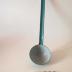 Description : Demi-sphère reliée à une tige recourbée à l'extrémité opposé pour la suspension dans uen garniture de cuisine ou un clou. Email bleu clair moucheté dans la louche. Bleu uni sur la queue.