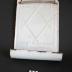 Description : Plaque rectangulaire avec nervures de renforcement et tringle d'accrochage pour la louche. L'écumoire, la cuiller à sauce etc. La base du rectangle se recourbe pour former une cuvette. Tout le pourtour est orné d'un liseré rouge. Présence de deux trous de suspension au sommet.