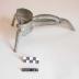Description : Appareil avec trois grilles interchangeables et une manivelle à une tête en caoutchouc. Présence de trois pieds, dont un sert de poignée et de point de pression sur les aliments.
