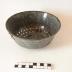 Description : Récipient sur plan circulaire à fond bombé et troué d'un grand nombre de trous relativement large. Il est équipé de deux crochets latéraux pour permettre la fixation sur un récipient. Les bords sont évasés et se termine par un repli de tôle.