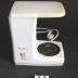 Description : 2001_006-1 : élément ayant la forme générale d'un "L", composé d'un socle rectangulaire comportant la plaque chauffante circulaire (diamètre 10 cm), d'un compartiment de chauffage et d'un réservoir dont la forme est un parallélépipède dont la section est vaguement rectangulaire (un des grands côtés est arrondis). Le réservoir est traversé par un tube vertical ramenant l'eau chaude vers le haut.