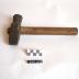 Description : Outil composé d'une pièce d'acier trempé de forme bicéphale : une tête cylindrique et une tête en forme de coin. Un manche en bois est inséré en son milieu (L du manche : 24 cm - section de la pièce d'acier : 3,5 x 4 cm)