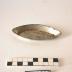 Description : Récipient sur plan ovale, bords bas inclinés, extrémités fines arrondies, fond lisse.
