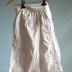 Description : Sous vêtement féminin comportant deux jambes rattachées à la taille par une ceinture à l'arrière, un empiècement en pointe à l'avant. Les côtés sont fendus vers le haut sur 23 cm et maintenus fermés par un bouton et une boutonnière. Dans la ceinture du dos, deux lacets plats coulissent et sortent par deux oeillets brodés. Les jambes sont fendues à l'entre cuisses et ornées vers le bas par une petite dentelle.